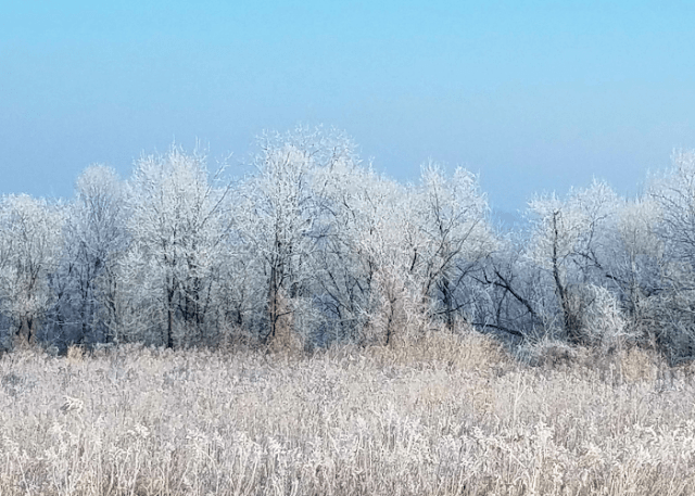 During the night, Old Man Winter magically blanketed the landscape with an amazing Hoar Frost (a beautiful white frost that covers the land but melts quickly once the sun comes out).