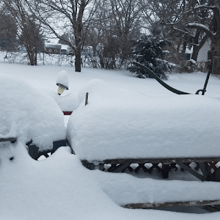 There was a small patch of snow shoveled on the deck. I usually shovel a patch so I can step out back and enjoy the amazing views. But I had to head over to the snow covered deck and out into the yard.