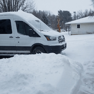 We hired someone to plow the driveway and sidewalk but, for some reason, when it snows a lot they don’t shovel around the van and I have to do it.