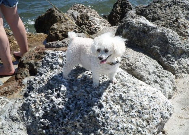 The sun is stronger here and, even with the breeze, it’s warmer than we are used to. We made sure not to stay in the sun too long and that Cookie had plenty of water to drink.