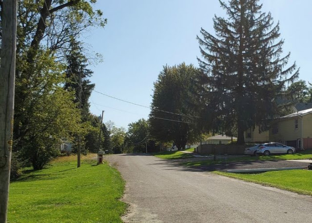 Where the are no sidewalks, I simply walk in the street as I enjoy the small town atmosphere on this wonderful autumn day.