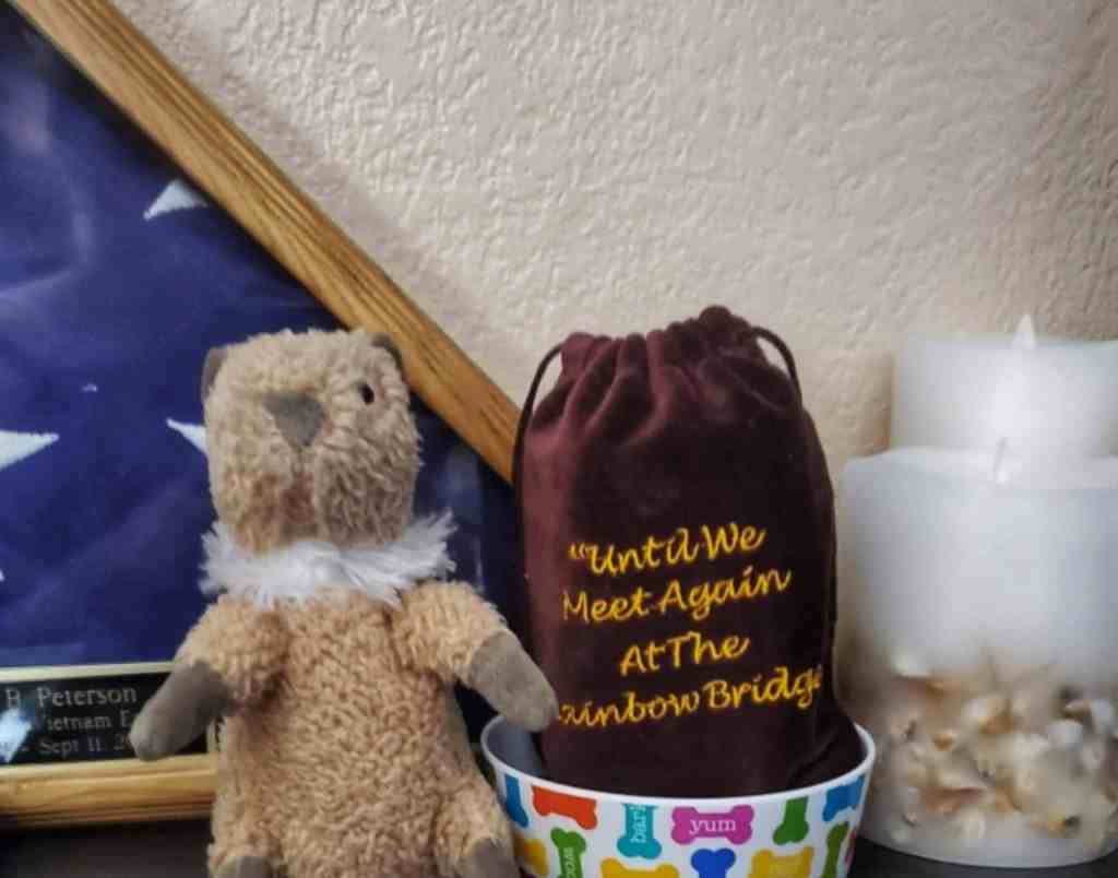 Cookie will rest on Nikki’s memorial shelf along with her Dad’s Burial Flag and memorabilia.