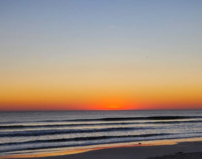 On the boardwalk, I stand and breath the fresh sea air and listen to the ocean waves as I wait for the sun.