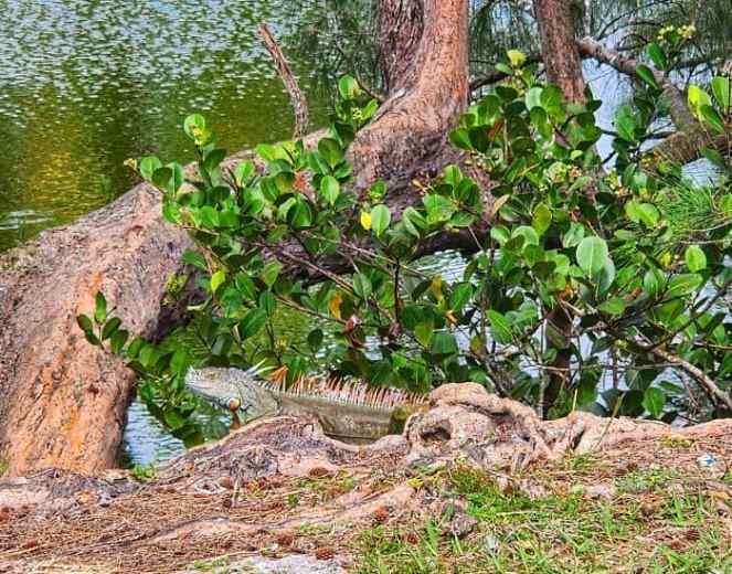 Another large iguana sits along the bank of the pond. Sometimes they’re hard to see – especially when they’re statue-like.
