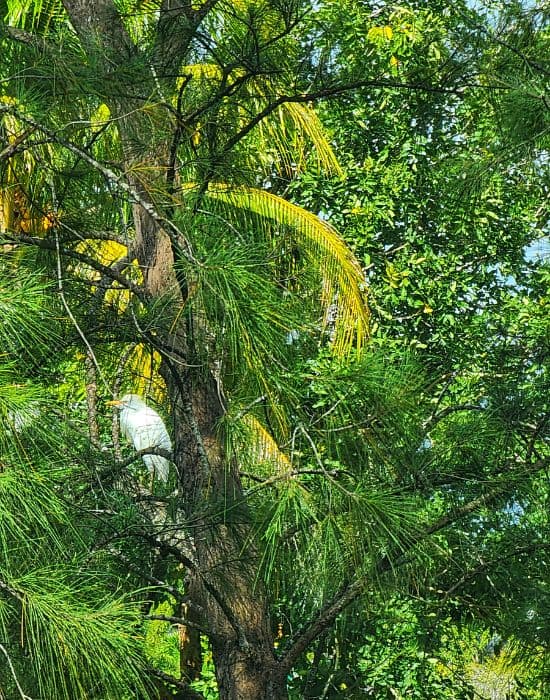 There are a few types of white water birds native to south Florida. It can be difficult to tell who’s who when they’re scrunched in the trees but they’re usually an Egret, Ibis or Heron.
