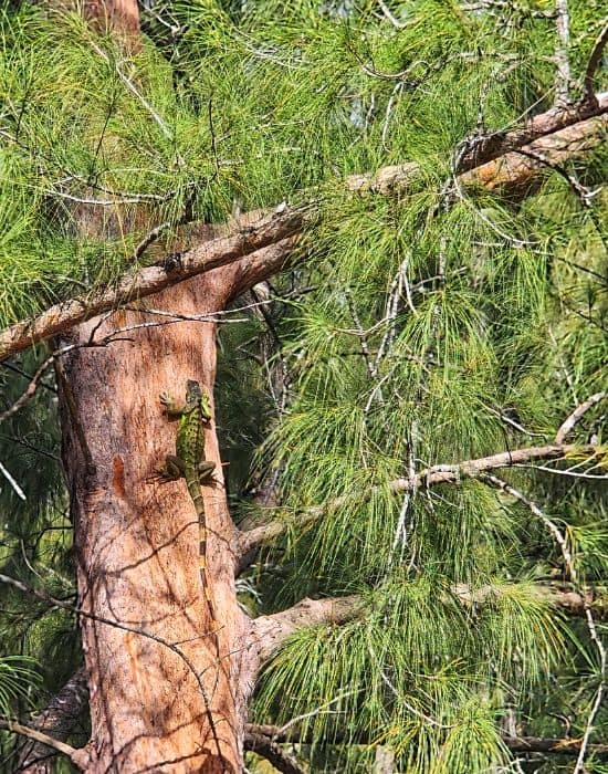 A colorful lizard climbed up the palm tree about 20 feet away from me. He paused for a photo before scurrying up the tree.