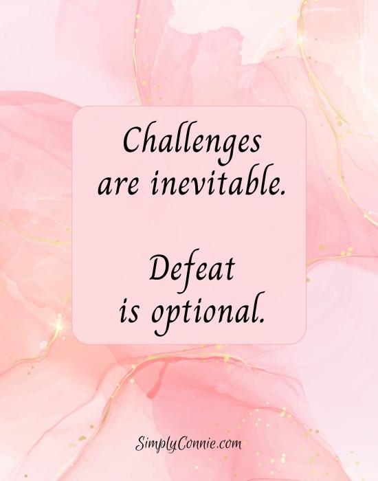 Challenges are inevitable. Defeat is optional. Quote about life challenges.